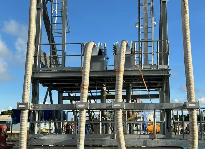Delmeco heeft zich de afgelopen jaren ontwikkeld tot specialist in de handling en verlading van LNG middels slangen. Onze systemen zijn ontworpen om een veilige en efficiënte overdracht van vloeibaar aardgas (LNG) te waarborgen. Onze oplossingen zorgen ervoor dat de benodigde LNG slangen soepel kunnen worden gepositioneerd, zelfs onder de uitdagende omstandigheden van een schip in beweging. Met innovatieve technologieën zorgen we ervoor dat het LNG veilig en snel kan worden overgedragen. Ze voldoen aan de strengste veiligheidsnormen van de maritieme en chemische industrie.